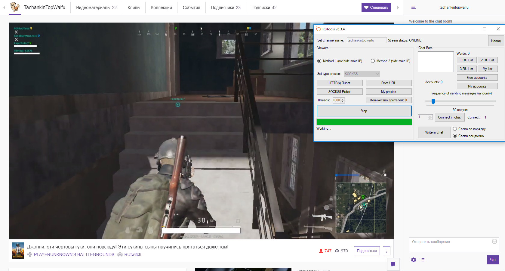 Guest qvixed Posted May 17, 2017 Posted May 17, 2017 2 часа назад, xayzenberg2 сказал: а что за прокси? за 120 долл скок крутят днем и вечером? рекомендую world mix, крутят хорошо скрин выше есть, ну если судить по старому софту где были потоки в 2 окна по 300 потоков крутили 1к+ без разницы день или вечер максимум ,что я выжимал это 3700 зрителей