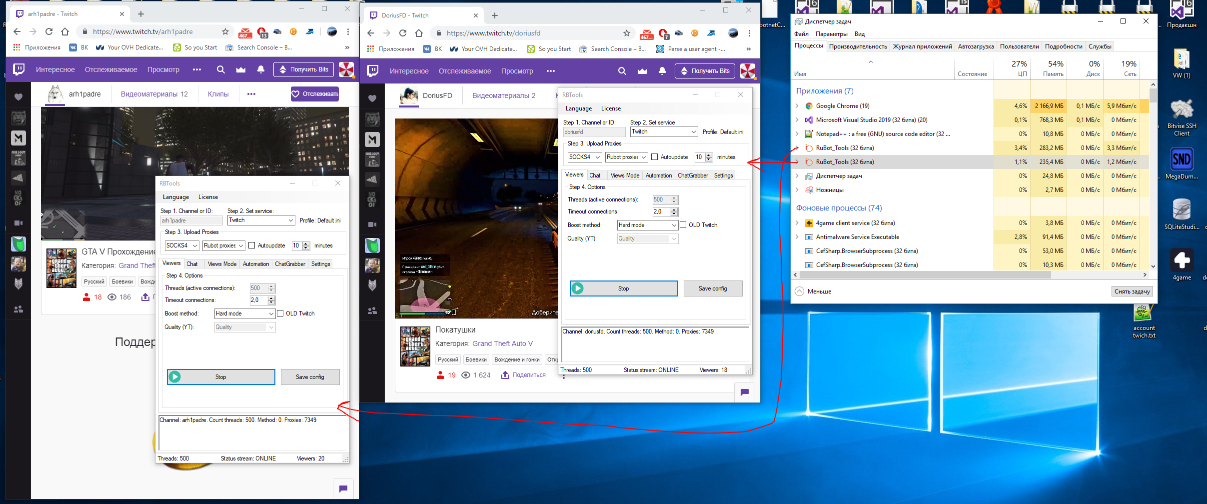 Admin Posted May 15, 2019 Posted May 15, 2019 Twitch-зрители. - Переписан метод накрутки, проведена работа с внешним и внутренним циклом, что разгружает процессор в 3 раза и расход трафика в 3 раза. Сравнение: Спойлер - Режимы Hard и Slow удалены и совмещены. Показатели были стабильными после часовой трансляции без автообновления прокси. - Режим "OLD Twitch" так же убран. По статистике метод ничем не отличается от стандартного. Стандартный метод потреблял меньше трафика. YouTube-зрители. - Аналогично методу Твичу используется и для YouTube с небольшим видоизменением. - Метод Quality YT удален и реализован внутри кода. Теперь приходящий трафик будет отображаться в Панели управления разноформатный. Визуальные и недокументированные возможности. - Система автоматизации все еще находится в долгой разработке. После множества экспериментов было принято решено реализовать внутри программы веб-сервер, который будет хоститься по умолчанию на запускаемом дедике или компьютере. С возможностью управления программой через веб-интерфейс. Спойлер - Включена экспериментальная возможность накрутки зрителей Mixer. в данный момент еще не работает. Граббер чата. - Исправлена остановка граббинга слов из чата - Добавлен граббер чата для YouTube. В связи с злоупотреблением использования одной лицензии программы на нескольких дедиках вне одной сети - лицензии будут отбираться и пользователи будут без объяснения причин отправляться в бан. P.s.: По чат-ботам и просмотрам - в следующих минорных обновлениях Апдейт намечен на завтра. 1