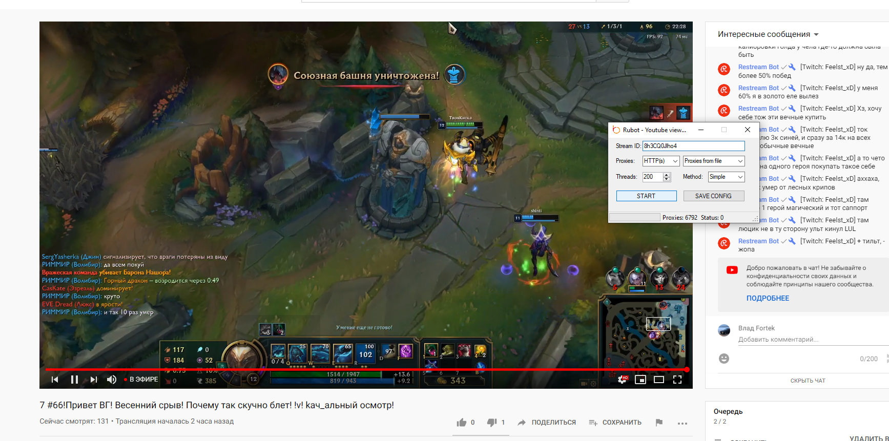 Admin Posted March 7, 2020 Posted March 7, 2020 1 минуту назад, onacobyn toy сказал: А как быть тогда с рубот проксями? Их же в лаунчере нет? Или вы по такому случаю заодно добавите их в лаунчер? рубот прокси будут добавлены. До модуля я пока что не доходил, т.к. был занят воркингом модуля чат-ботов Твич с чекингом. Сейчас конкретно ютубом занят, все добавлю.