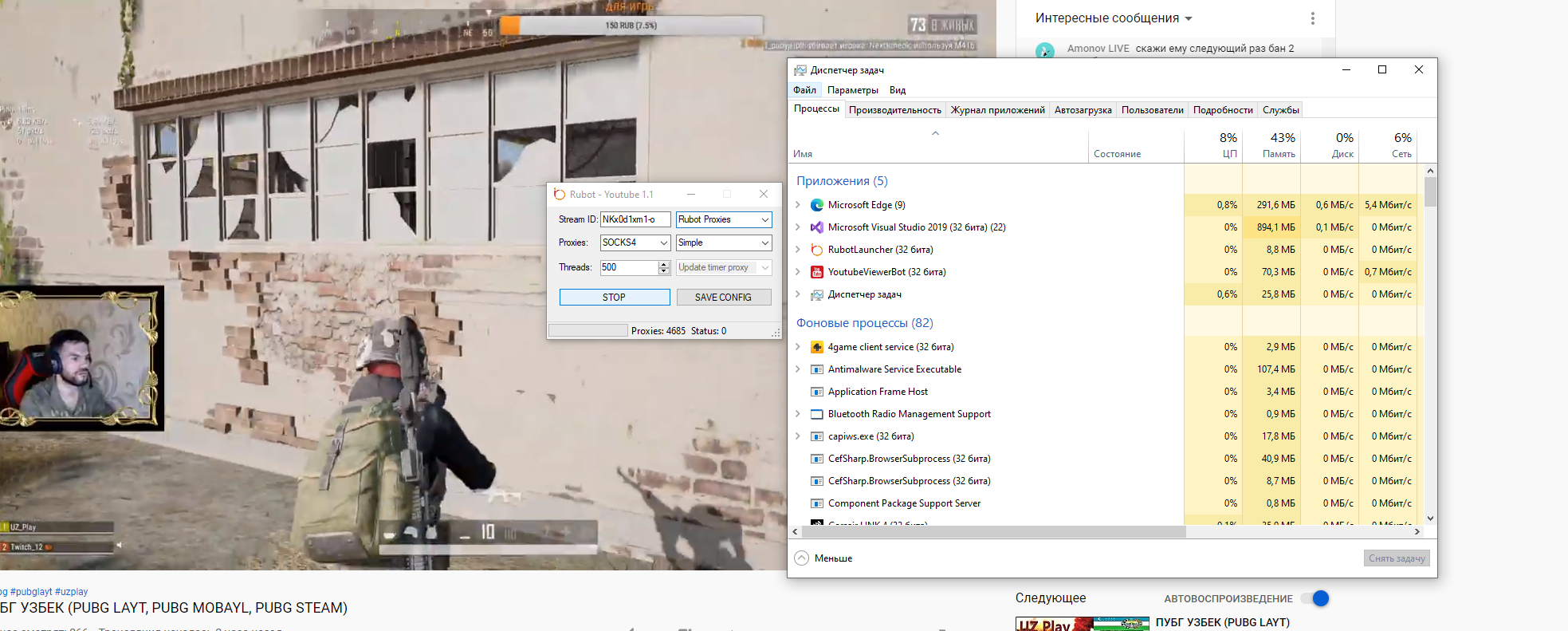 Admin Posted March 7, 2020 Posted March 7, 2020 Только что, onacobyn toy сказал: Тогда надо искать, какая функция в окне вызывается в среднем каждые 10-20 секунд (именно с такой частотой появляется нагрузка на незадействованном окне) в отличии от твича, здесь работает только 1 цикл, внутренних и внешних циклов нет. Попрошу ребят протестировать работу на дедике. На моем личном ПК все отлично как версия с протектором так и без