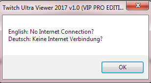 Guest zhenyavka Posted September 14, 2017 Posted September 14, 2017 Купил на днях Twitch Ultra Viewer 2017. Прочёл весь FAQ, запустил прогу, мой внутренний хомяк уже начал радоваться, как вдруг я вижу чёртово окно ошибки о том, что нету подключения к интернету(см.скрин). При чём если вводишь ЛЮБОЙ пороль - такая фигня. Возникло такое чувство, что тебя наепнули. Проблема не может быть связана с провайдером, так как с интернетом у меня всё отлично(Оптоволокно само за себя говорит). Спрашиватсья, В ЧЁМ ПРОБЛЕМА И КАК ЭТО ИСПРАВИТЬ? p.s ключ активации вводил как на rubot, так и на babatools.