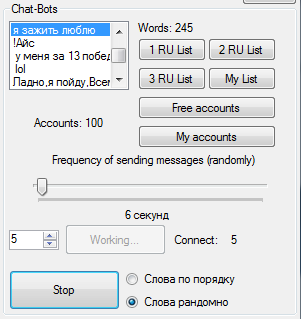 Guest NoName Posted October 30, 2017 Posted October 30, 2017 Уж извините, если глупый вопрос, но всё же хотелось бы узнать ответ. Вчера купил софт, всё нормально работало. Сегодня перестали работать чат-боты. Ввожу имя твича, виверов накручивает, жму к примеру 2 RU List, ставлю секунд 6, ставлю 5 ботов, жму Connect и после того как они законнектятся, жму Start. В самой программе выбираются разные фразы, но в чате глухо. Никаких слоу или саб модов не стоит.