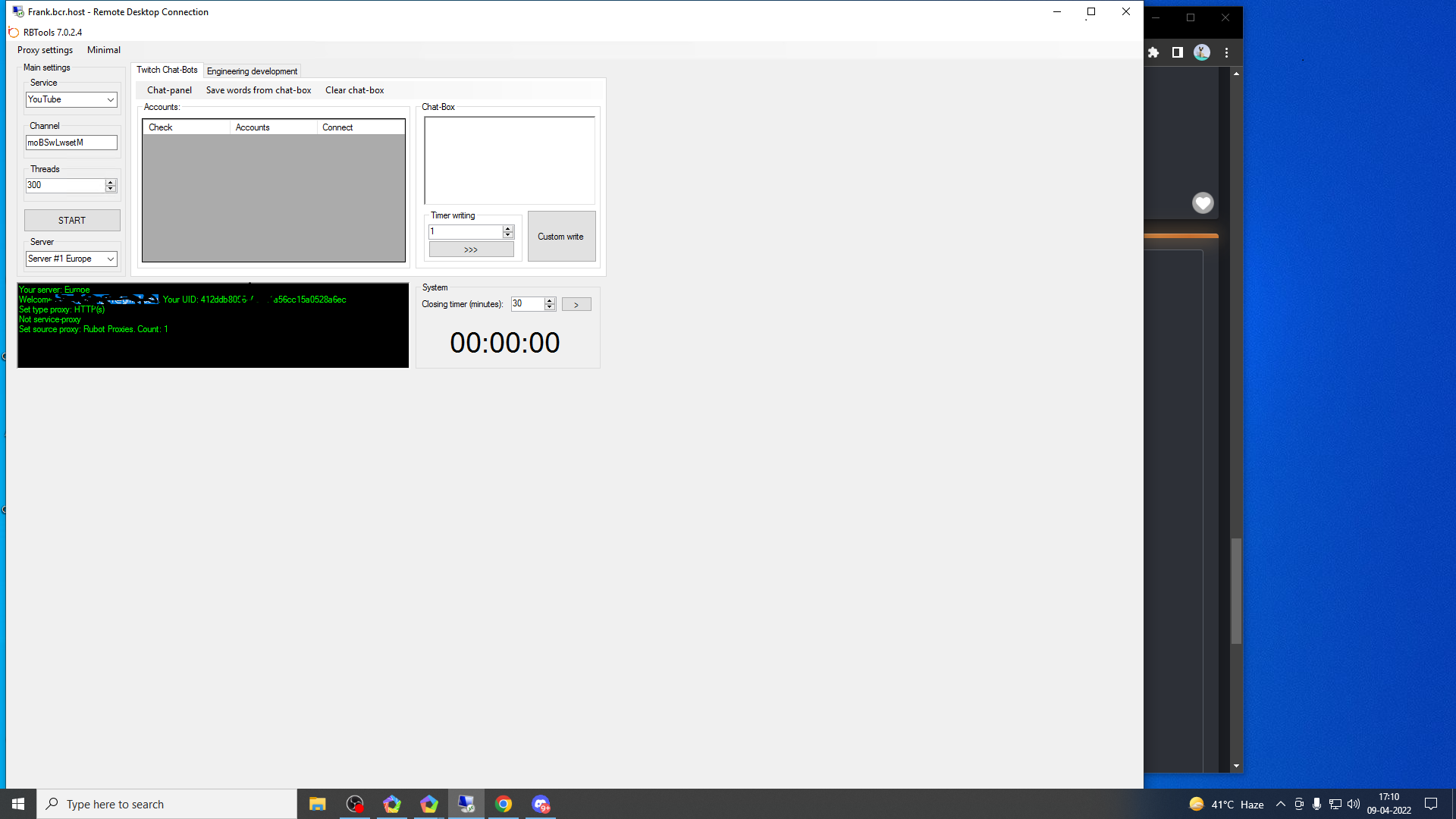 Admin Posted March 30, 2022 Posted March 30, 2022 5 часов назад, PowerPro сказал: Добрый день. Заинтересовался вашим продуком Интересует 3 вопроса. 1. Банят ли накрутки на Chaturbate вашим ботом? 2. Можно ли ставить параллельно 50 потоков например, по 1000 зрителей? 3. Какие затраты (на сервер и IP адреса) еще будут нужны помимо покупки программы. Т.е. интересует себестоимость 1. Нет 2. Желательно на другом ПК. 3. Сервер на iHor на 4 ядра и 4 gb ram, в среднем 1000+ рублей. Прокси не нужны.