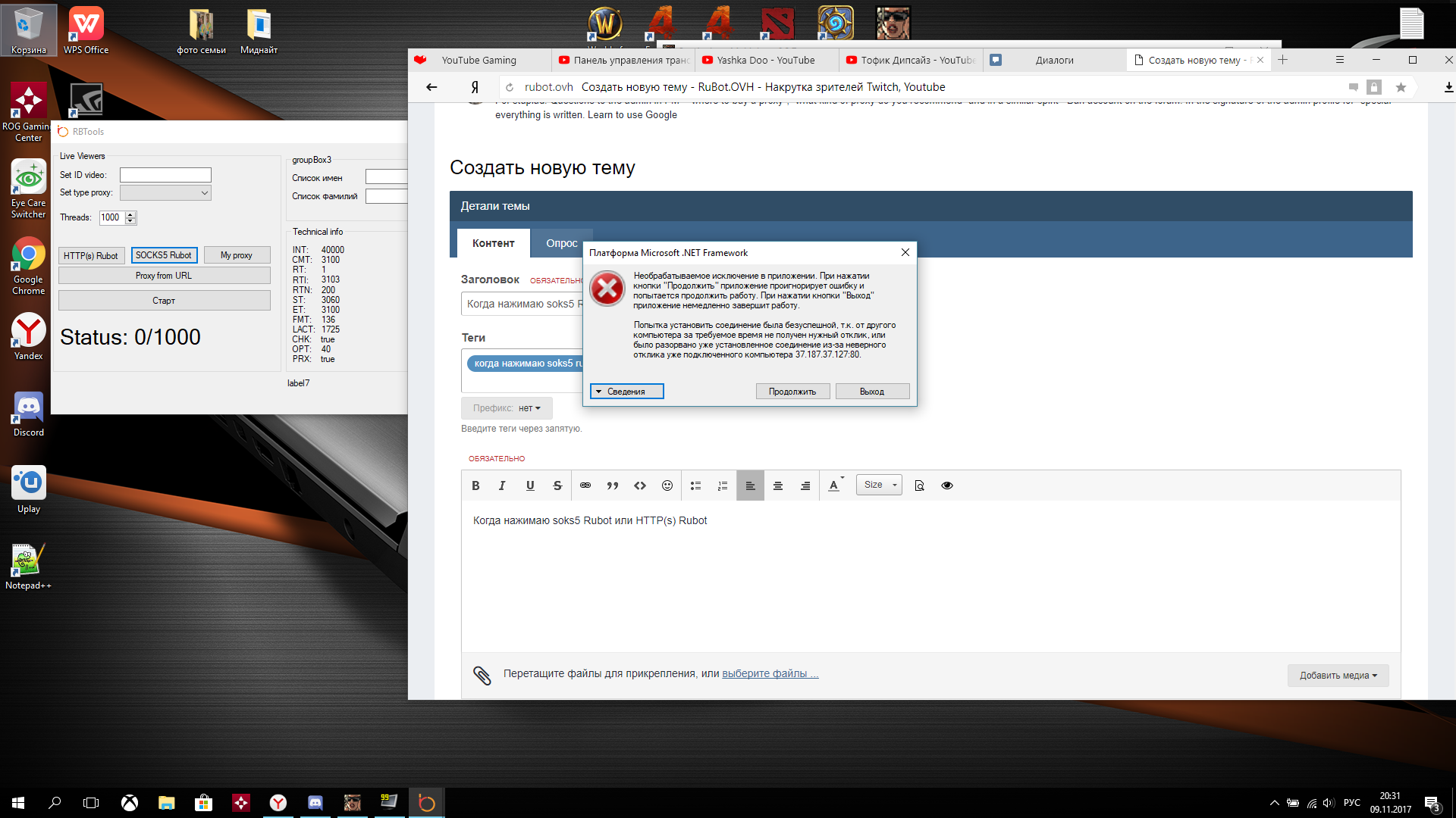 Guest YashkaDoo Posted November 9, 2017 Posted November 9, 2017 Когда нажимаю soks5 Rubot или HTTP(s) Rubot Вот что вылазит что делать? и еще нагружает цп на 100