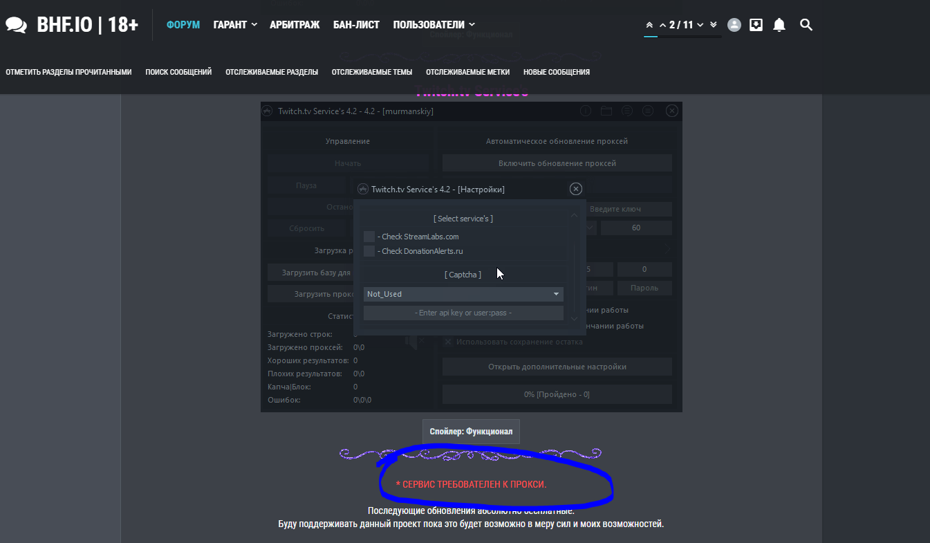Admin Posted February 21, 2018 Posted February 21, 2018 9 минут назад, lolheh сказал: такая же фигня , 2 дня назад дешевыми проксями крутило 100+ зрителей на твиче , а теперь чёт тупо 10 - 15. Хз я думаю вряд ли все прокси в чс попали так быстро. После обновы последней бред какой то стал Это не после обновы, это просто начало новой волны блокировки проксей на Твиче. Такая же ситуация и на моих старых исходниках. Тему закрываю. Хотите под Твич норм накрутку - раскошеливаемся на нормальные прокси. На Ютуб не важно какие прокси.