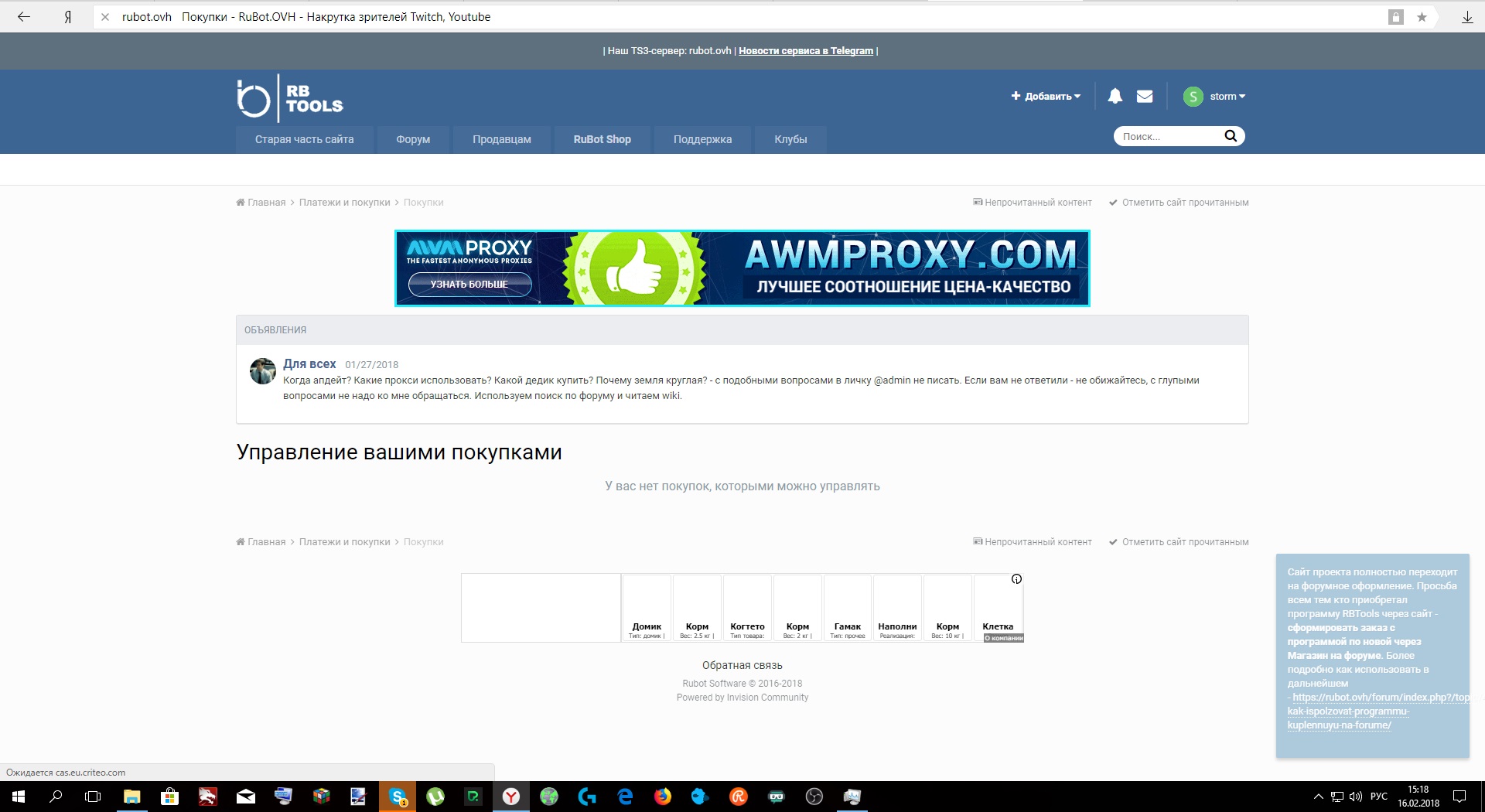 Admin Posted February 16, 2018 Author Posted February 16, 2018 1 минуту назад, GoodLordOFdarkneSS сказал: Зрасьте, у меня вечная лицензия и прога сейчас не работает, вы говорите на форме нужно пройти покупку по новой но не платить, но я не могу найти на форму где купить рубота, скиньте пожалуйста скрины всей процедуры или ещё лучше запишите видео и закрепите его в топик) меню форума гляньте и увидите Rubot Shop ,а еще на главной сбоку красуется софт