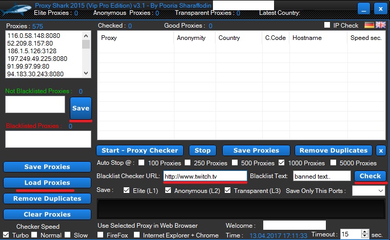Guest qvixed Posted April 13, 2017 Posted April 13, 2017 2 часа назад, mushi сказал: Купи proxy shark 1. load proxy (загрузи в прокси шарк) 2.Введи сайт как показано на скрине 3.Chek (начать проверку) 4.Save (сохранить гуды) Благодарю